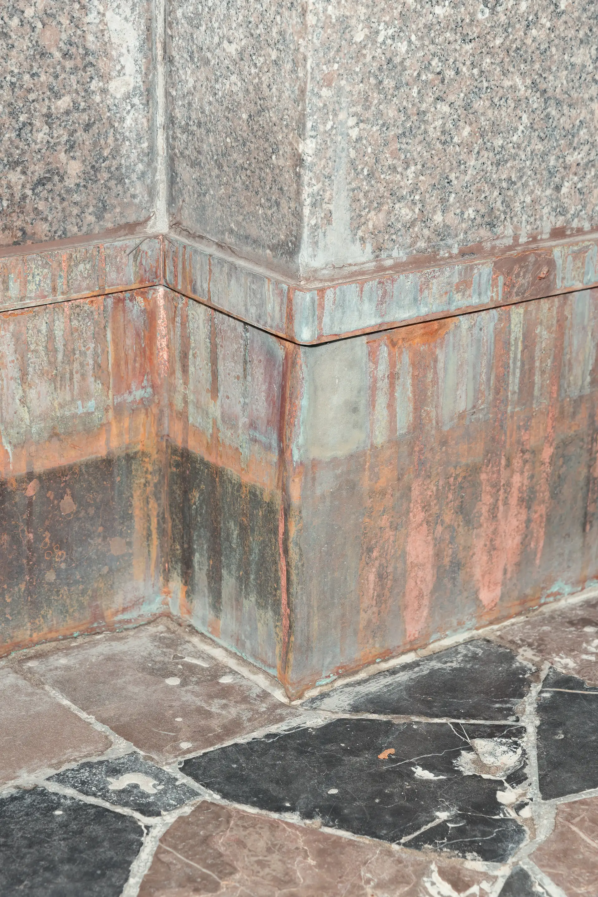Elewacje Pałacu Kultury niemal w całości obłożone są płytami w kolorze różowym i żółtym, które przez lata poszarzały pod warstwą zanieczyszczeń. Mogłoby się wydawać, że płyty powstały z piaskowca. W rzeczywistości wykonane są z przypominającej ten kamień ceramiki. Przyjechały do Warszawy z ZSRR, z fabryki na Uralu.